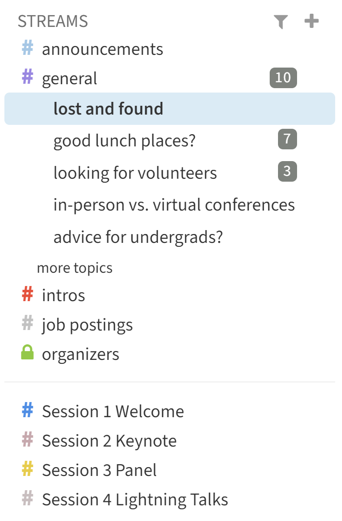 Zulip is the only modern team chat app that is ideal for both live and asynchronous conversations. Post presentations and announcements, host Q&A sessions, and coordinate among organizers.